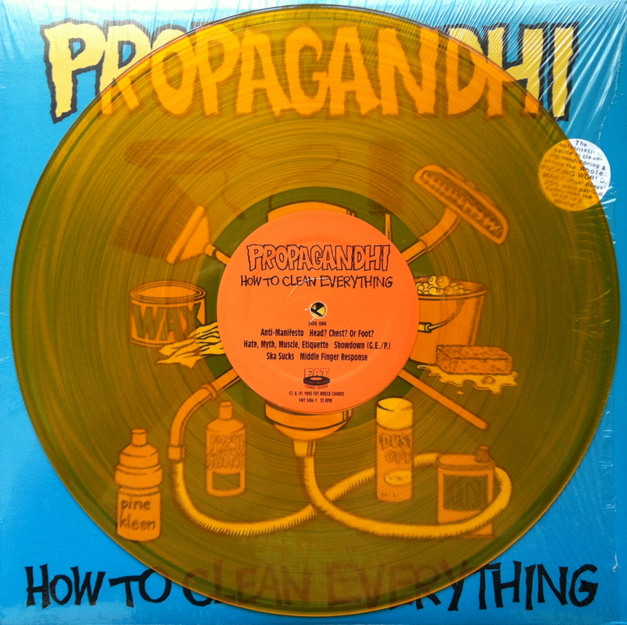 Sprouting from a household of three (my parents being the other two), we assumed the old “divide and conquer” strategy and cleaned the entire, two-story house. Now, as an adult shaped boy-child, Saturdays are STILL synonymous with cleaning. So, as my beautiful counterpart and I clean our pad, I suggest Propagandhi’s 1993 major label debut (if you consider Fat Wreck Chords a major label), How to Clean Everything.