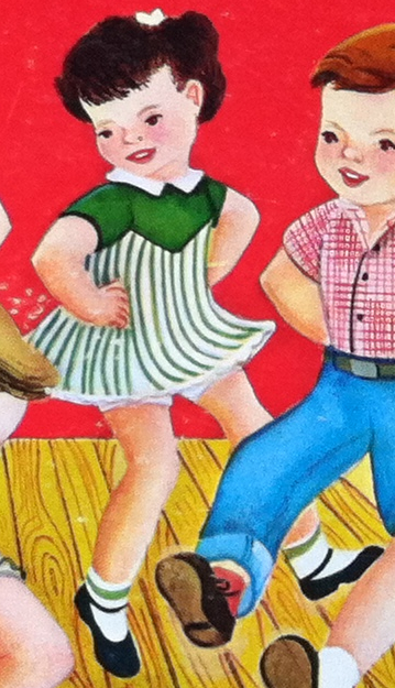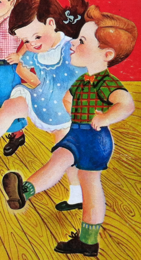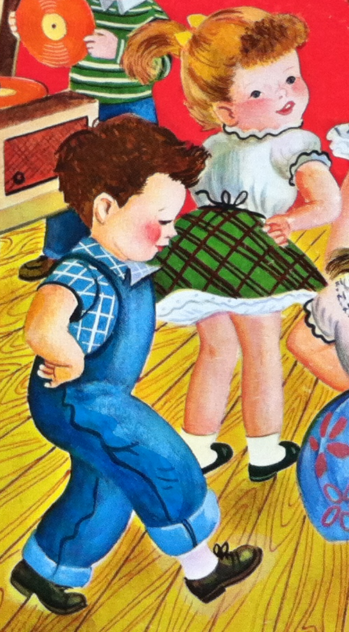 Sally Walker & Jimmy JazzHere, we have Jimmy Jazz and Sally Walker, two kids completely oblivious to the sheep-like connotations of social line dancing. Jimmy finds himself in deep concentration in keeping in step with the song, The Hinkey Dinkey Square Dance. The sheer terror of missing the beat with his finely tuned Chicken Dance has forced Jimmy into a Jedi-mind-like Zen state. Jimmy is clearly the room’s best dancer, and unbeknownst to him, is a ladies favorite. Sally is hopelessly in love with Jimmy, and has been since the song, The Irish Washer Woman. She often flaunts her backside in the hopes that one day she will catch his eye. Sally has self-esteem issues for beyond that of a normal five-year-old.