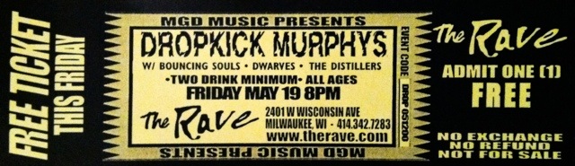 Gone are the leisure-filled days of stopping off at the local record shop on the way home from school to snatch, if no necessary deals were found, free mock-ticket ads for upcoming Milwaukee area shows. This particular night in May of 2000 featured a masked gimp stage diving and picking fights with select, drunk patrons (Dwarves), a wall-echoing, room-filled chant of East Coast pride (“East Coast F— You” by Bouncing Souls), and an eager and overly-excited pop-punk-loving Milwaukee crowd rushing the stage to share the mic for a final encore (Dropkick Murphys). All-in-all, it was a rather memorable, aggression exhausting evening some 14 years ago.