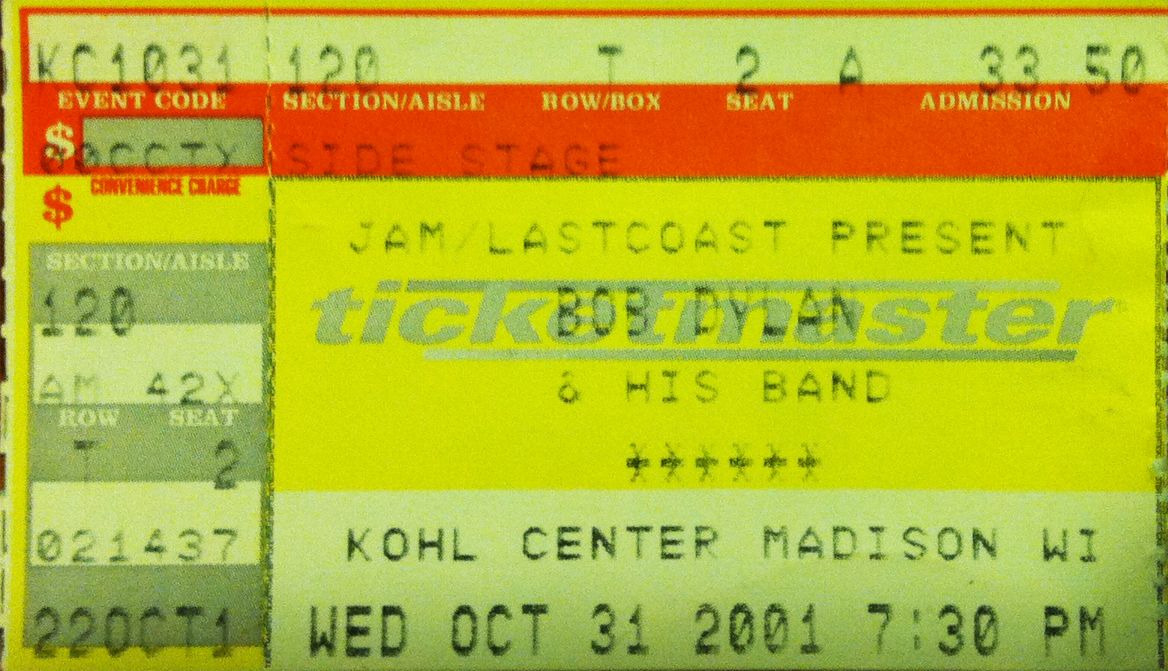 An opportunity presented itself back in (date) that would have been unbelievably stupid to pass up. My mom scored free tickets to a Bob Dylan performance in Madison, WI, and kindly offered them to me. Using the term scored as a drug reference when referring to my mother is humorous to me, and kind of appropriate for ol’ Bob’s transcendent vibe. Anyway, to make a short story even longer, my show-going companion and I got the time of the show mixed up (by a good couple hours) and we arrived just as ol’ Times They Are A Changin’ had started his 2nd encore. He played All Along the Watchtower, something else I didn’t recognize, and then he was gone.