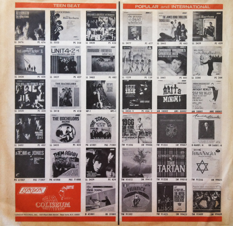 London Recordings, with all her lofty divisions, offered a red, white and blue window into the mid-60s English Assault, and was home to some pretty significant acts producing some pretty extraordinary cuts. Their mainstay, and supplier of the label’s flowing honey, were, as you’ve probably guessed, the Rolling Stones, but what I didn’t recognize until earlier today was how many other British Invasion favorites, or in this case Teen Beat favorites, also strolled under the London Recordings umbrella. Unit 4+2, the Moody Blues, the Zombies, and Them all saw early offerings on London, or one of her sisters, and in such a short amount of time, helped propel this label into the upper, heavily coveted realms of rock n’ roll history.