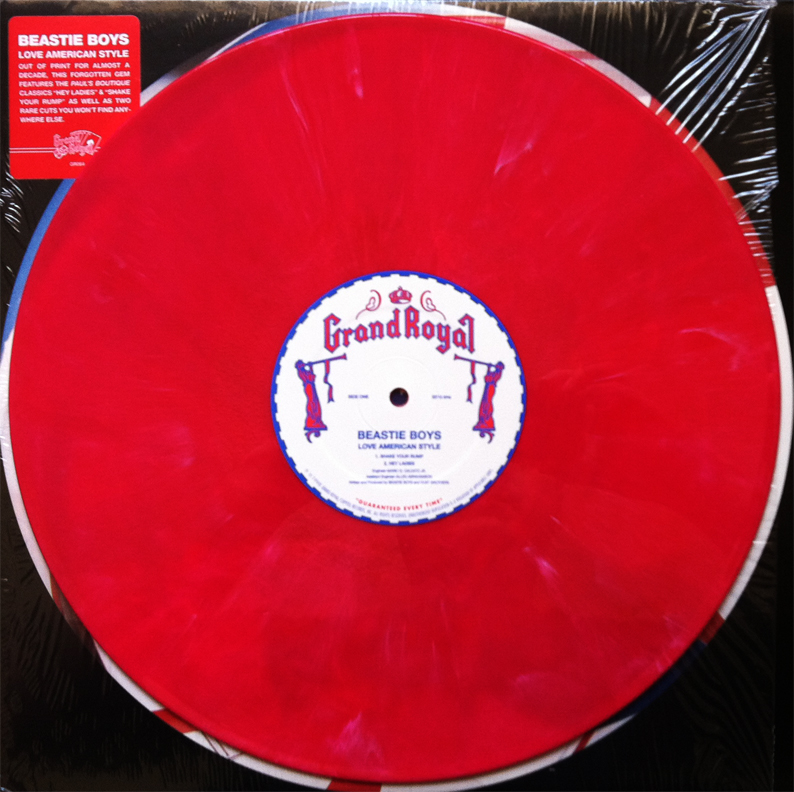 Love American Style, the 1998 reissue of the 1989 accompaniment to the legendary Paul’s Boutique record is not only the 64th release from Grand Royal Records (Guaranteed Every Time), but also one that was released on black, white, and of course this, red vinyl. Produced by both The Dust Brothers and the Beastie Boys, Love American Style includes the Hey Ladies singles in its entirety (b-side Shake Your Rump), while including Dust Brothers jams, 33% God and Dis Yourself in ’89 (Just Do It). Fans of Paul’s Boutique and the Beastie Boys alike will instantly recognize 33% God and Dis Yourself in ’89 (Just Do It) as rehashed instrumentals of the record’s a-side, which stand as monumental achievements of pre-Beastie Boys, all-Dust Brothers party-jams. Are the b-side’s two tracks worth seeking out this four-track 12”? You tell me.