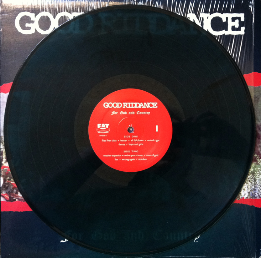 Originally released on February 1, 1995, For God and Country, the first studio album by angry punks from Santa Cruz, saw a recent (within the last five or so years) reissue on limited colored vinyl. This version, described from the Fat website as “Navy Blue” is more of a transparent midnight blue than a straight navy, but whatever. Limited to only 653 colored copies, this classic album gets the proper Fat respect that it greatly deserves.