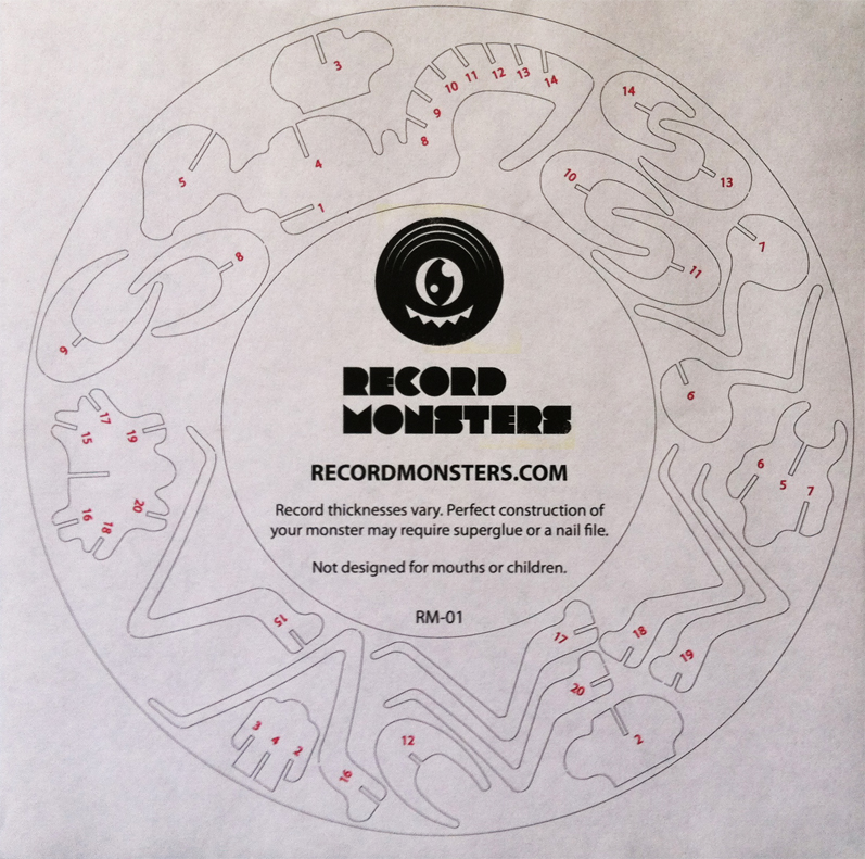 We laser cut vinyl records to become pieces of monster art. We ship cut records that you can break apart and build. (2011)