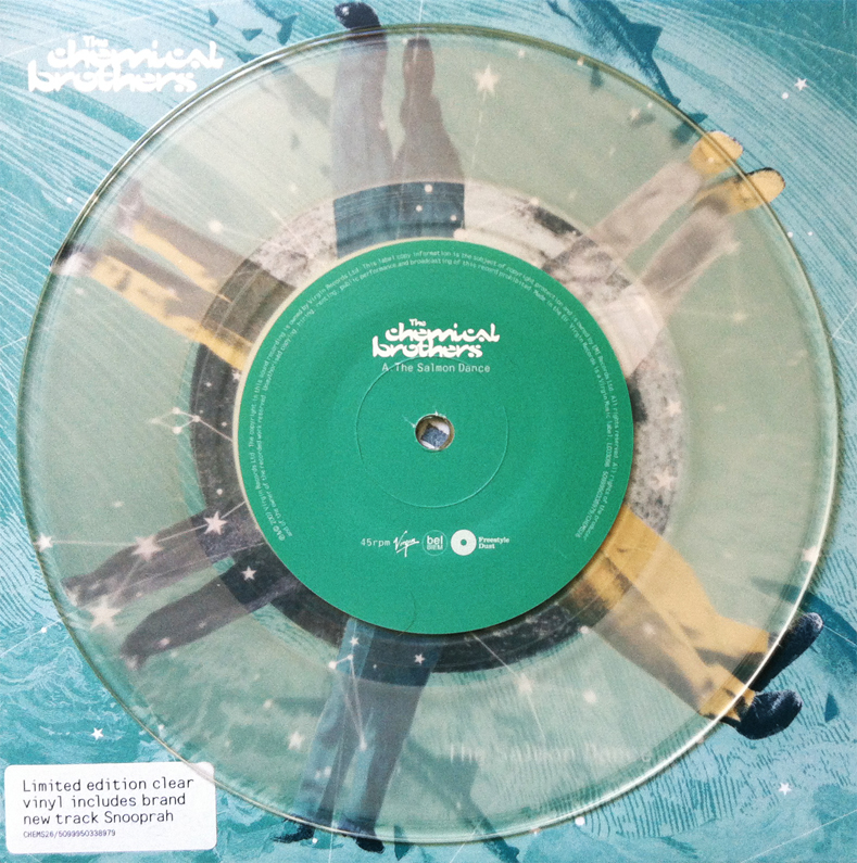 Hello boys and girls… featured here today is 2007’s 7” single from UK’s big beat crackerjacks, Chem Bros (aka The Chemical Brothers). Featuring, and co-written by Derrick Stewart, aka Pharcyde’s Fatlip, the 2nd (of many) lucrative singles from 2007’s We Are the Night, brings to life a shorter, much more compact (and opaque) version of the promo 12” of the same track. Dance the Salmon, kids… in your own, upstream, current-faring way.