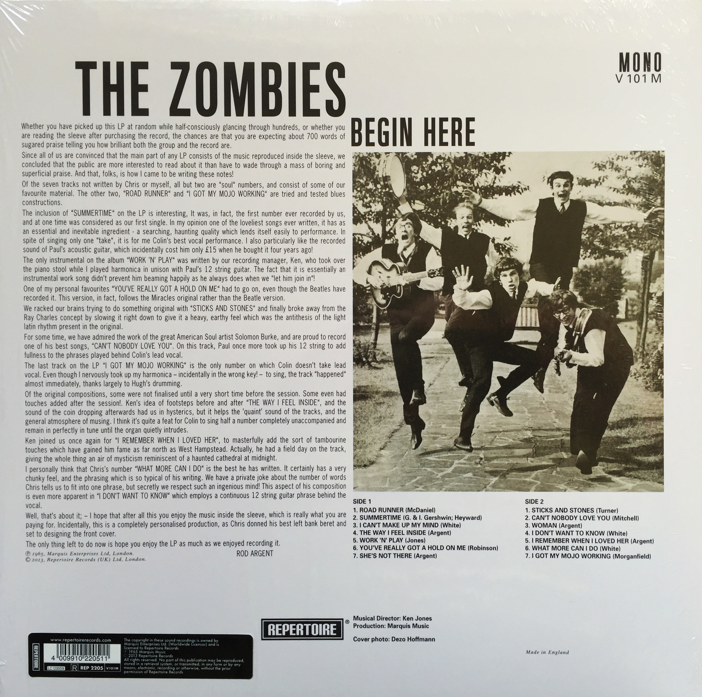For reasons far beyond my level of feeble comprehension, here is the back (ass-cover) to The Zombies’ 1965 debut, Begin Here. Mind you, this is just a reissue (180 gram, half speed mastering at Abbey Road), but Mr. Rod Argent’s humbling write-up has all the makings for an entry worthy of withstanding the tests of time. Have a read, then a listen (if you’re already in the know). The Zombies : Begin Here…