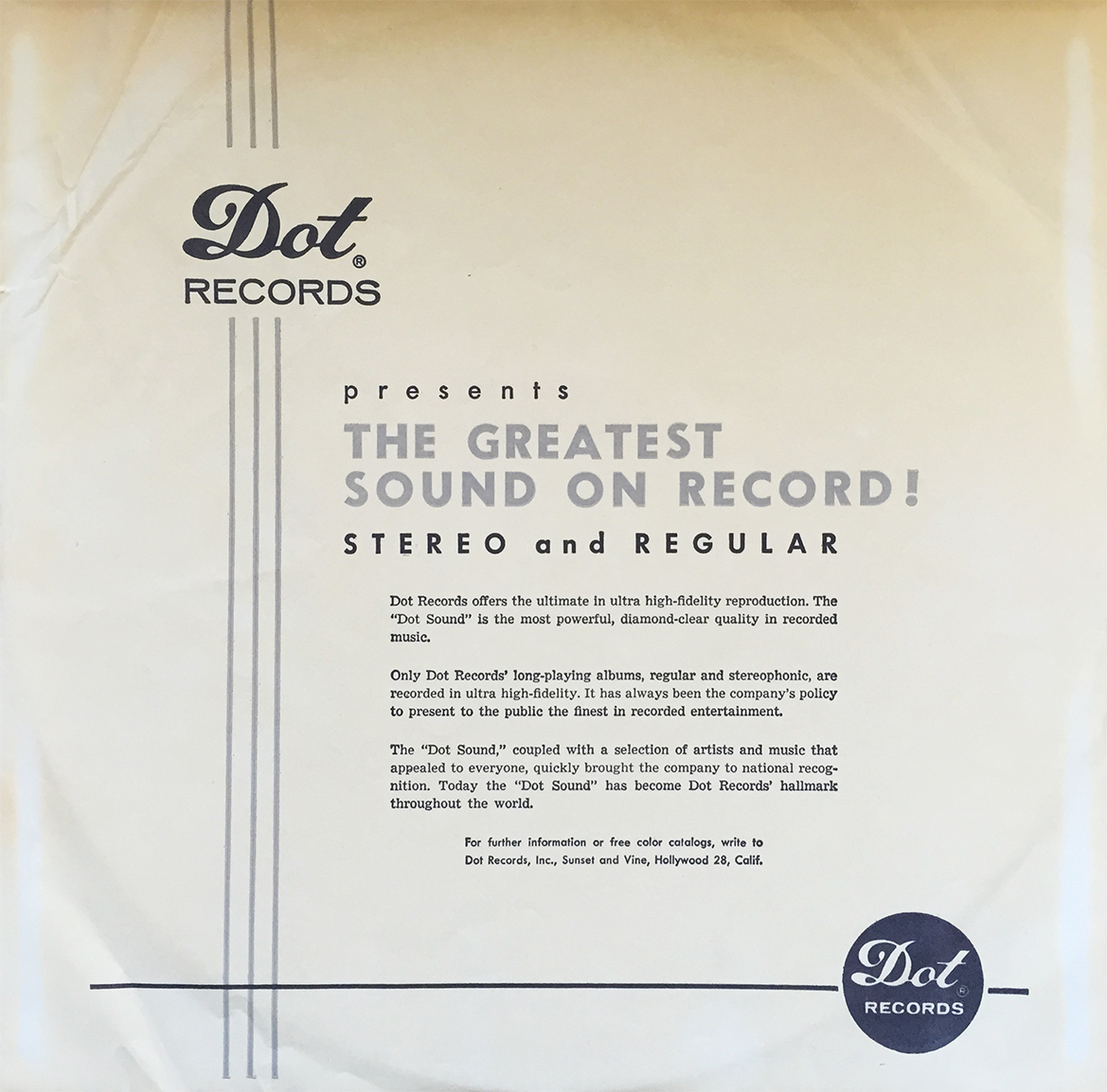 Only Dot Records’ long-playing albums, regular and stereophonic, are recorded in ultra high0fidelity. It has always been the company’s policy to present to the public the finest in recorded entertainment.