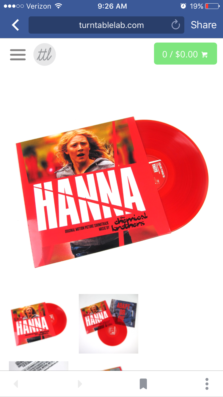 Forgot to post this last night. I’ll screen grab offers from time to time so as not to forget to order an essential record. Case in point, this “official” (non promo) release of the Hanna soundtrack by the Chem Bros. $30+ for a single record release is a bit steep, but when she’s limited to only 1500 copies, the decision is a no-brainer.