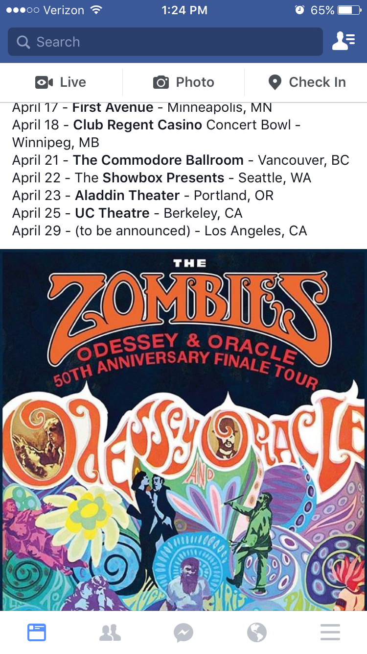 So, it APPEARS, that The Zombies will end their Odessey & Oracle tour finale in Los Angeles at an undisclosed location in late April of next year. 50 years, kids! I’ve already asked for this day off from work (a Saturday), so book your flights and sweet talk the in-laws to watch the little ones, because The Zombies are coming to town…