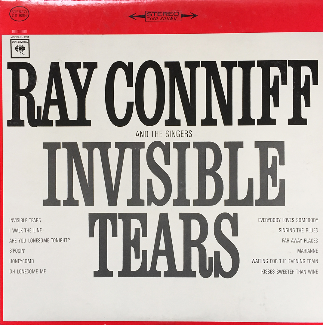 On Invisible Tears, Ray Conniff (and the Singers) offered their laid back, pop-jazz renditions of popular tunes of the 1964 era. With tracks like, I Walk the Line, Waitin’ for the Evening Train, and yes, you guessed it, Invisible Tears, your evening of quiet, unassuming dining room waltzes is only an invisible tear away.