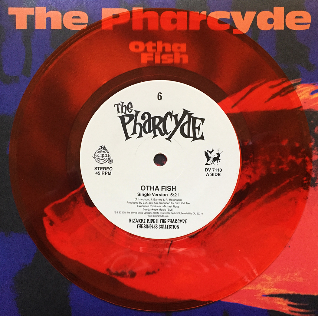 Fresh from the Bizarre Ride II The Pharcyde The Singles Collection, this 2012 colored vinyl reissue of the 1993 classic was one of 7 x 7″ 45s that make up this essential Delicious Vinyl release (record 6 of 7 to be exact). The music isn’t all that bad, either. Otha Fish Single Version on side A, and Otha Fish Acapella on side B, for those of you wanting to tickle your hip hop beat production fancy.