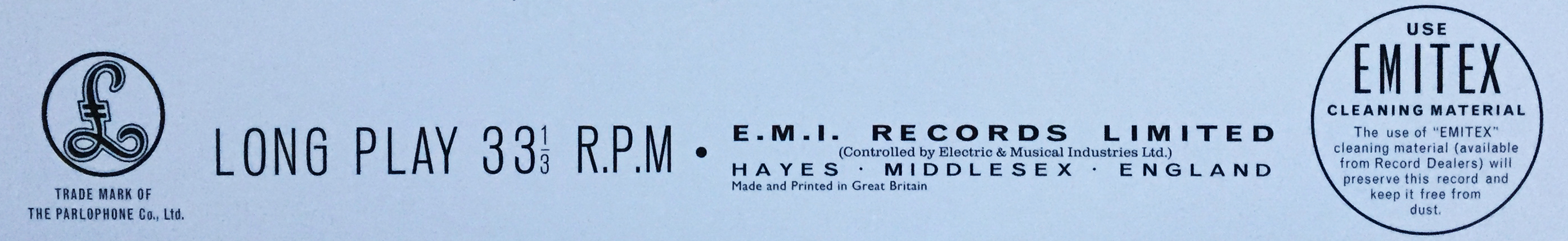 From what I could (quickly) gather, Emitex was a British-based cleaning material used by Parlophone in the 60’s, then by EMI Records throughout the 70’s. It was also a prominent badge on all British-released Beatles albums, such as this reissue of PMC 1202, Please Please Me. Several variations of this classic stamp are found around the web, but little has been preserved about the Emitex material itself. With more time, I’ll dig a bit deeper.