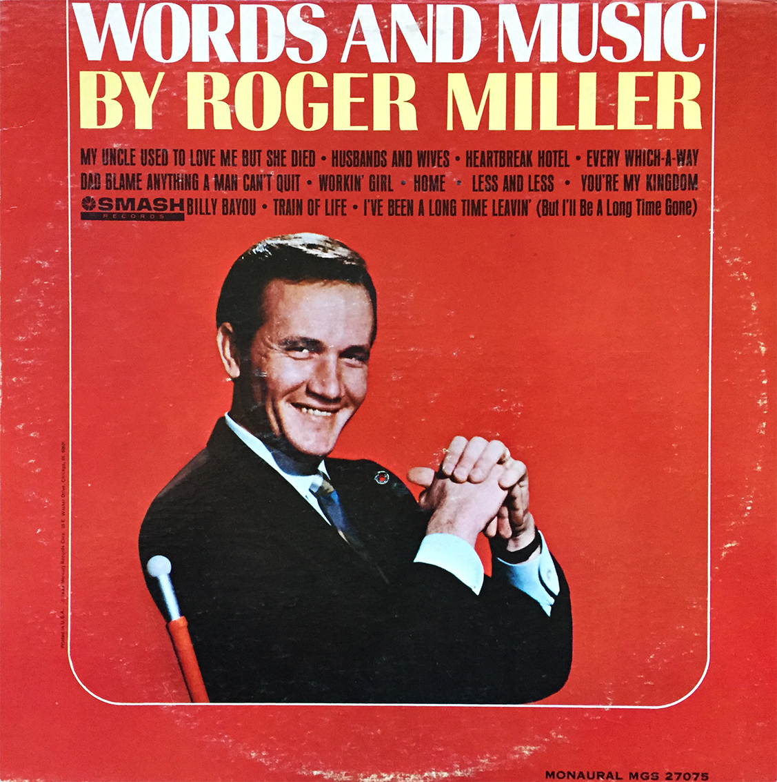 Roger Miller is a goofy cat. Aside from voicing the narrative rooster in the famed Robin Hood animated feature from 1973, Mr. Miller championed fans and critics alike with his flavor for the funny. Do-Wacka-Do and You Can’t Roller Skate In A Buffalo Herd come to mind, but until the other day, I’d never heard of My Uncle Used to Love Me But She Died. This king of the road country funnyman is well worth keeping tabs on, and even if you’re not too keen on that whole country thing, you should definitely give Roger Miller a shot. (Smash Records cat. no. MGS 27075)