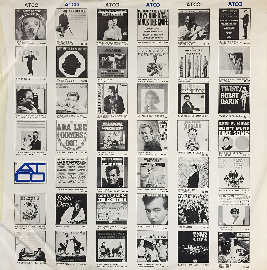 For pop leftovers, and overall items of quality that don’t necessarily fit “the norm,” look no further than Atco Records. Atco, and stop me if you’ve heard this, was used by Atlantic Records to shell out quality cuts by a variety of soul, blues, R&B, and jazz personalities starting as far back as 1955. Bobby Darin, Bent Fabric, John Lee Hooker, Ben E. King, and Betty Carter are just a few greats represented on this insert sleeve. As functional as it is informative, Atco inserts bring a great deal of history to a single printed sheet.