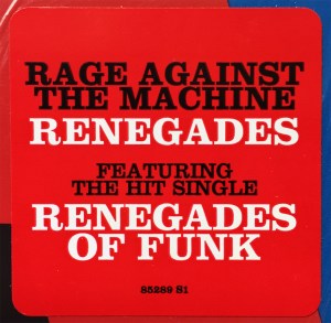 Get hyped for this circa: 2000 collection of Rage-infused covers of Cypress Hill, Devo, Bob Dylan and Minor Threat songs (among others, included Renegades of Funk by Afrika Bambaataa). The album for which this sticker does its dance was the last by this prolific band, and was released a full two months after their breakup. Hyped yet? Renegades… an almost two decades-old conclusion to a short-lived and necessary implement of 1990’s subculture. Keep your stickers, kids!