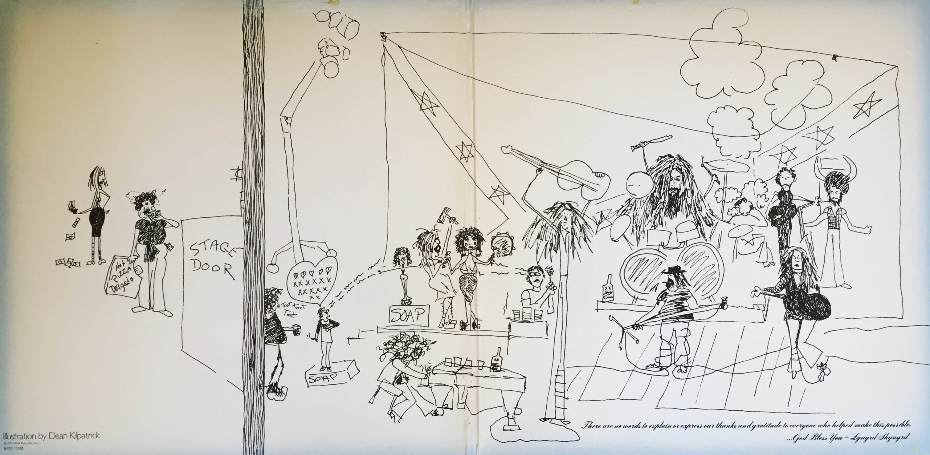 Presented here, with little-to-no creative description (read: little-to-no sizable effort) is a snapshot illustration of the mighty Lynyrd Skynyrd making southern rock mythical music. Art is by Dean Kilpatrick, and it can be found within the pried bowels of the band’s 1979 best-of, Gold & Platinum. Carry on.