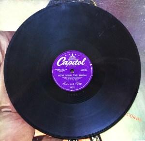 Back in 1951, the husband and wife combo of Les Paul and Mary Ford released a slew of shellac 78s. Almost exclusively on the Capitol Records label, this 10″ features Les on his custom Gibson and Mary’s angelic melody on vocals. How High the Moon back with Walkin’ and Whistlin’ Blues as catalog no. 1451. The former is from the stage production of Two for the Show, while the latter is a lazy stroll of an instrumental with a country twang and a foot-stomp backbeat. Certainly a fun, yet restricted and short listen.