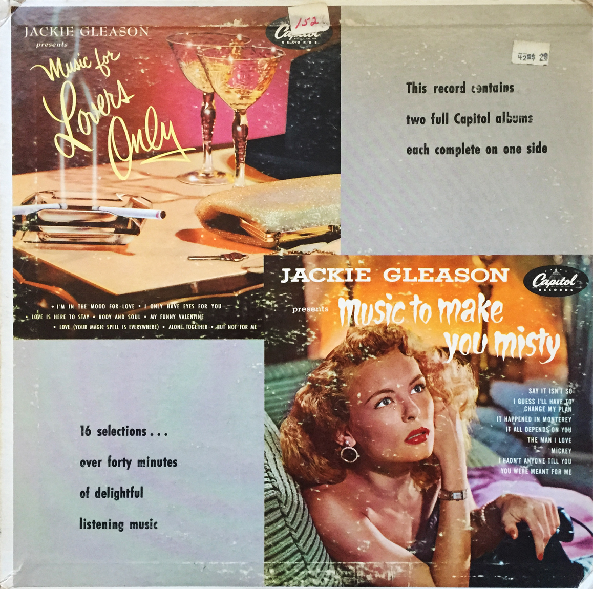 Truth & Honesty 101 here, kids. I know nothing of Mr. Jackie Gleason outside his reference in Robert Zemeckis’ 1985 time traveling classic, Back to the Future. Shame on me, for sure, don’t’cha know? So how better to dive into this pool-playing hustler’s repertoire than a single LP comprised of two of his first three albums? I can think of no better way to begin the Gleason journey, than at the very beginning. On a side note… what, exactly, are we referring to when we use the term “misty” here? Inquiring minds want to know…