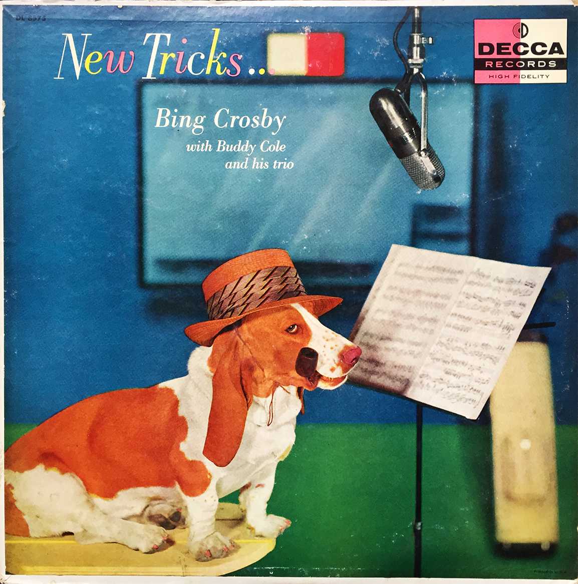 While I sit here, eagerly listening to Jericho Sirens, you know, the new Hot Snakes album, I feel an urgent need to mentally frolic over this goofy-ass Bing Crosby cover from 1957 titled, New Tricks… I mean, just look at that dog’s disapproving glare! And the characteristic hat and pipe?! It’s just too much! Well, after you’ve had a good laugh, just think… that dog is dead now. What, you think dogs can live to be 60 years old?! What world do you live in, and how do I get there? But in all seriousness, New Tricks… is a pretty straightforward Bing Crosby record. Nothing too flashy, and a lot more of the same shtick that made Mr. Crosby the household name that he is. Buy it for the cover, but that’s about it. RIP funny dog.