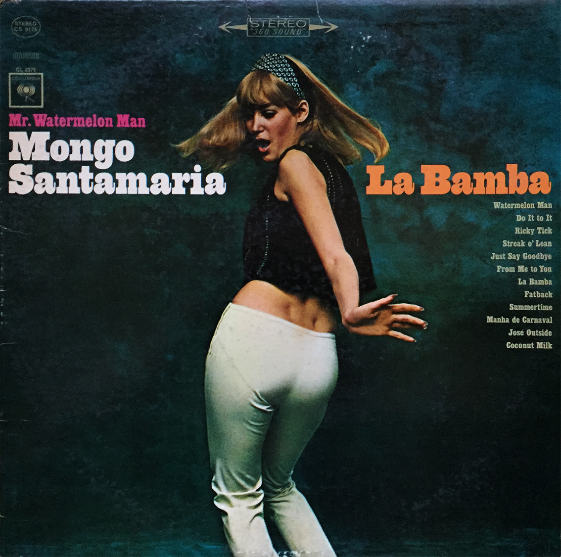 Watermelon Man Mongo Santamaria unearths his namesake 1963 hit (Watermelon Man) for a slightly extended version on his 1965 album, La Bamba. This Latin Jazz collection of 12 tracks is an uplifting, cha-cha-inspired insta-dance party on two, 33 1/3 rpm sides of wax. It also contains both flute and tenor sax contributions from the famous Hubert Laws, WELL before the time of his famed CTI Records success. This record is solid from start to finish, is perfect for mid-afternoon shuffles around the office or living room, and is well worth the hunt.