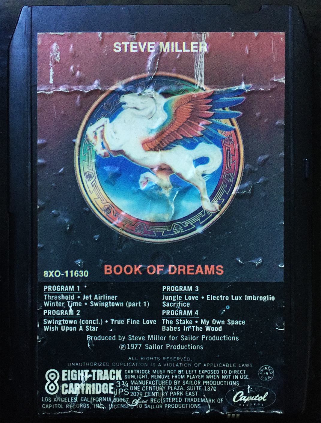 1977’s Book of Dreams was The Steve Miller Band’s 10th studio album, and arguably their most prolific release. 7 of the tracks would appear on the band’s Greatest Hits 1974 – 1978 album, which appeared just a year after Book hit record store shelves. The classic Jet Airliner is the obvious standout (or Jed & Lina, depending on who you ask), but Book also contains the party-favorite Jungle Love. In all, it’s no question, given the outrageous success, that this album would appear on multiple formats. Presented here is a newly acquired 8-track. Same track order as the vinyl release, save for Swingtown which is broken into two parts. No joke, The Steve Miller band hit it huge with Book of Dreams.