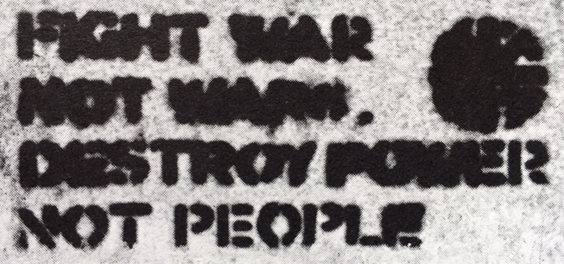 Fight war, not wars. Destroy power, not people. – Crass