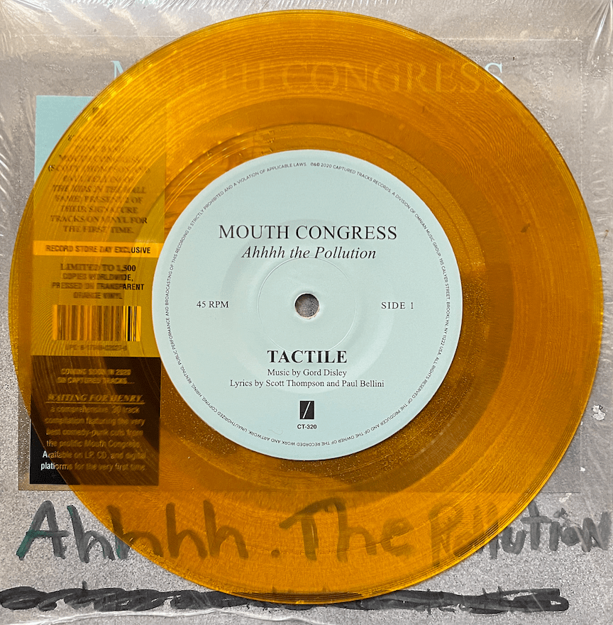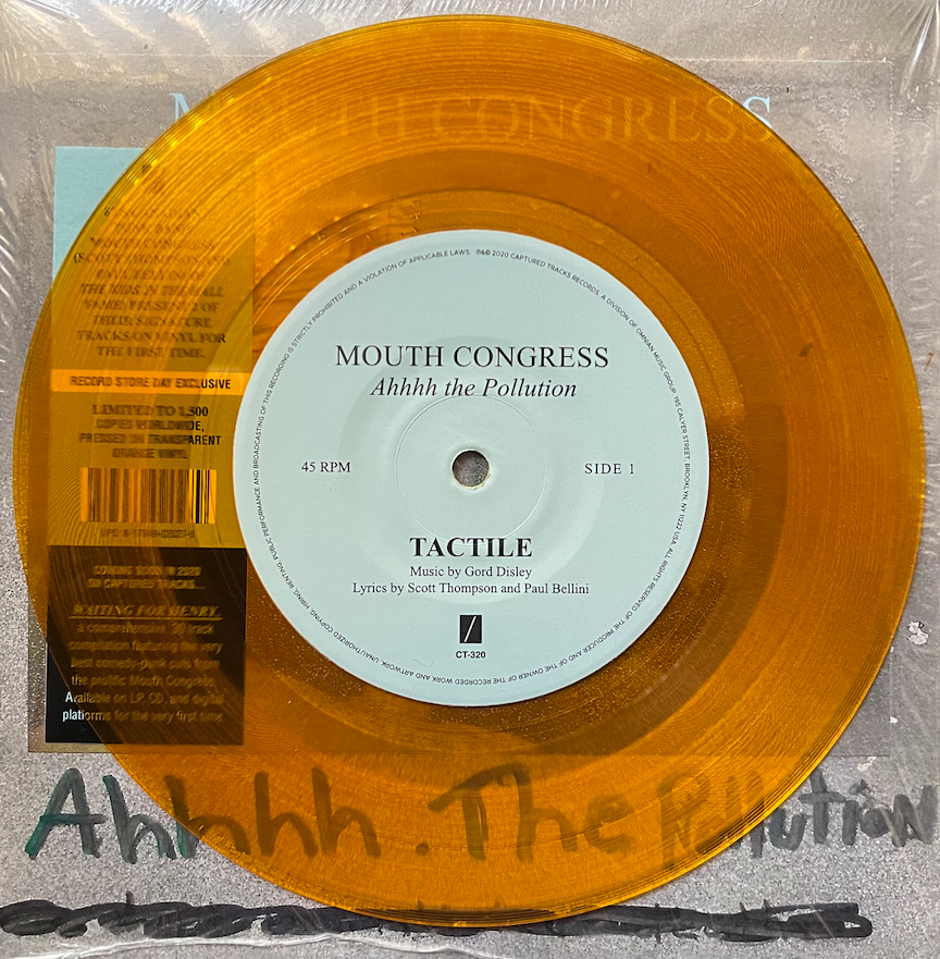 In honour of The Kids in the Hall coming back (tomorrow! Amazon!), let’s quickly focus on a short-lived side-hustle from Kid Scott Thompson and Kid-friendly Paul Bellini with their first 7″ Mouth Congress release, Ahhhh. The Pollution. A RSD offering, this, and their double LP comp is much better ear candy than it should be, especially since this band has been so widely ignored until fairly recently. Saving this, and the comp for tomorrow, as the unofficial Kids Day, but please, do check out this obscurely flamboyant, and aggressive combination of ear noise as soon as you possibly can. Not only can you dream about touching Paul Bellini, but you can now hear him.