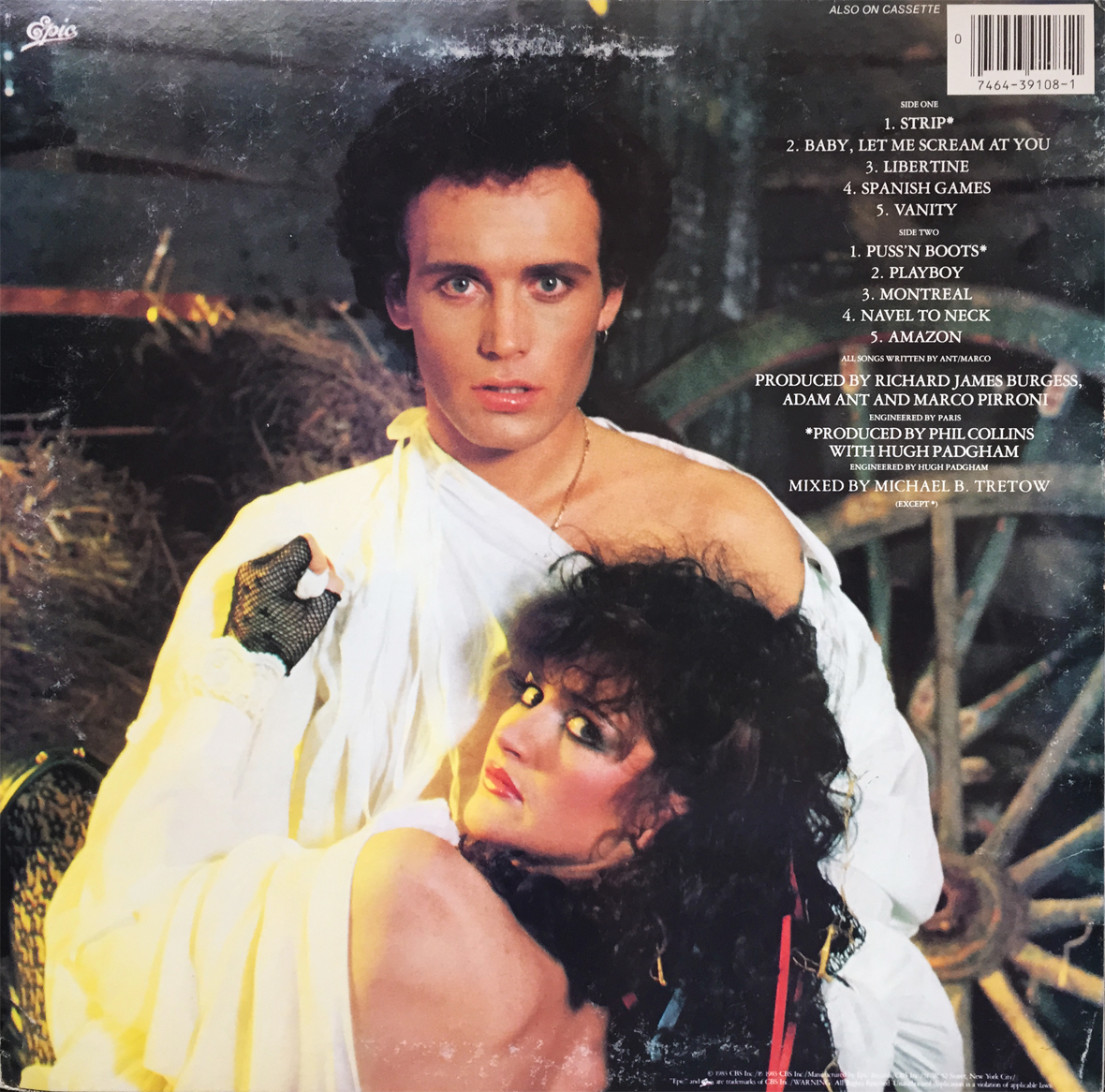 AntMusicI’ll admit that I went through an “80s” phase about a decade ago, and managed to gobble up any and every early 80s pop album I could find. I’d been the proud owner of Adam Ant’s B-Side Babies back in High School, and figured that expanding my Adam Ant collection was a logical endeavor. Strip, with its chart-climbing single, Puss ‘n Boots (which was co-produced by Phil Collins, I’ll have you know) was Mr. Ant’s 2nd solo effort after ditching the Ants in ’82.