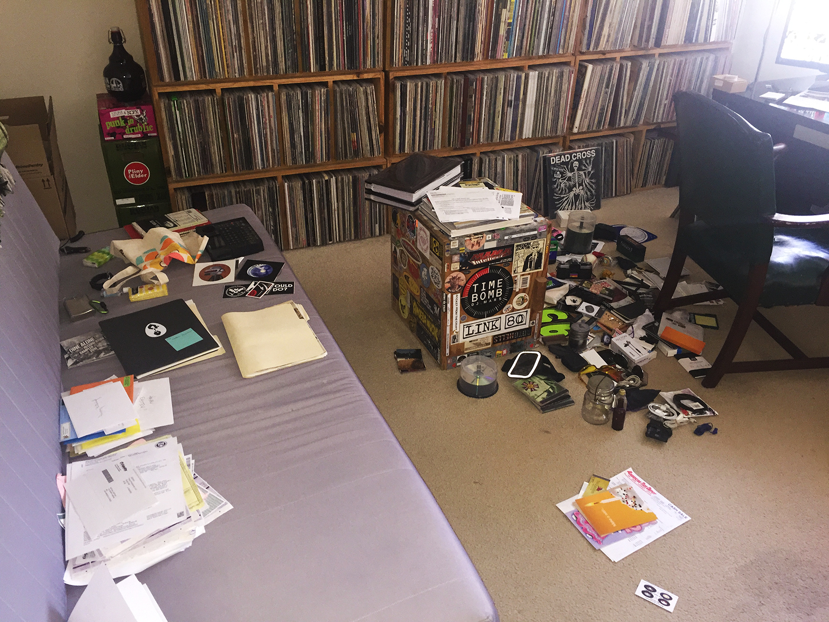 This is what I told my wife… I’ve got a plan. No, it’s not a secret plan to fight inflation, but instead a plan to emerge from chaos with strict, binary organization. The plan worked, I’ll have you know, but please notice a few things during this, my “transition” period… an age that lasted something like four hours. The most obvious is the Dead Cross LP. I’d just finished spinning that when this moment was stolen from time. There’s a TMBG Flood CD, Rocket from the Crypt dice, the Boss DR-5, two unopened sixers of NOFX’s punk in drublic beer, and of course, the Alternative Tentacles “What would Jello do?” bumper sticker. All things, somewhat music related, that have now found a new home. Cheers to being OCD!