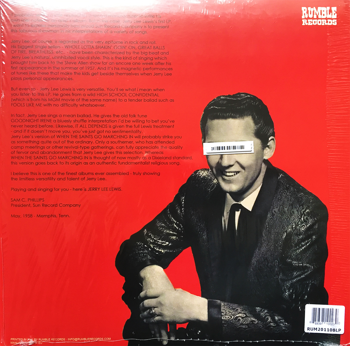 Double up on doubling down. This reissued copy of Jerry Lee Lewis’ 1958 self-titled debut is, in fact, an oversight, and a double. Such aggravating instances occur when you’re paying rent for 3800+ records. I’m whittling down the names of local collectors who might benefit from a new, unannounced record, but in the meantime, I’m going to chuckle at the creatively placed “don’t steal me” barcode.