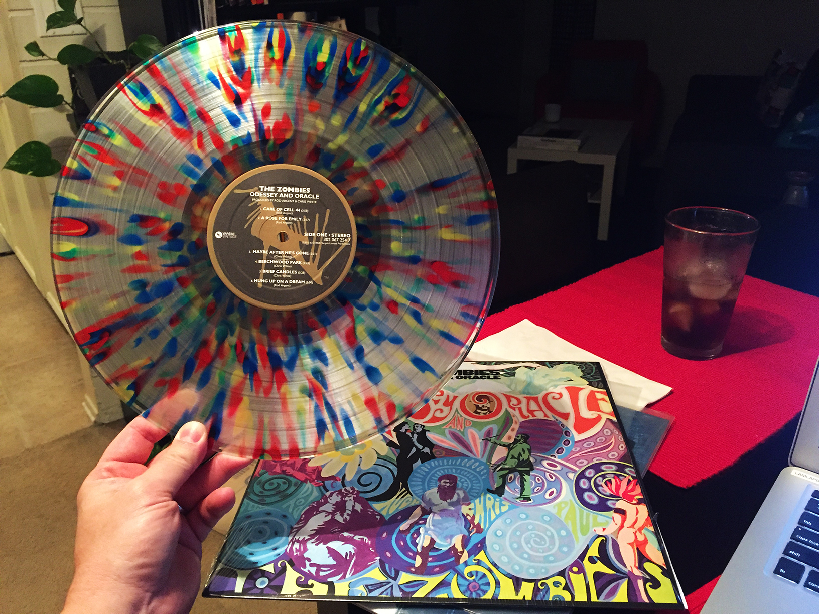 That’s the official vinyl color for this recent pressing (May 25th) of Odessey and Oracle by British chaps, The Zombies. Technicolour Explosion. (Yet) another Newbury Comics exclusive (limited to 1000 copies), this gorgeous reissue feels like 180 gram vinyl, though this perk isn’t noted anywhere in the item’s description. This is now our third version of this essential album, with (at least) one more to come… the US alt cover reissue from 1969.