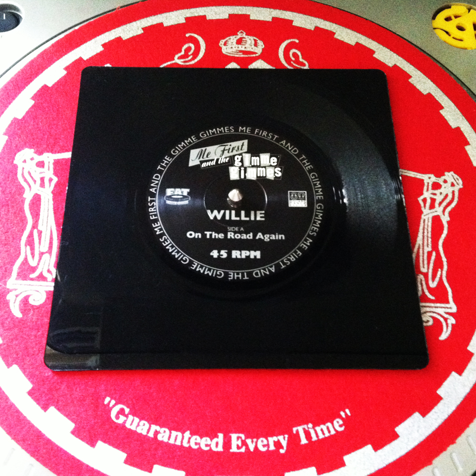 I’ve never been a DJ, but have always gotten a devilish kick out of clothing my turntables. Forever and a day ago, I posted about my newly acquired Grand Royal slipmat lot, and right now, under my More Charlie Barnet album (currently spinning on the platter), is a slipmat with the mummified RFTC logo from their “last show” in San Diego back in 2005 (they’ve, obviously, gotten back together since then, so the “last show” novelty has all but worn off… but the slipmat is killer!).