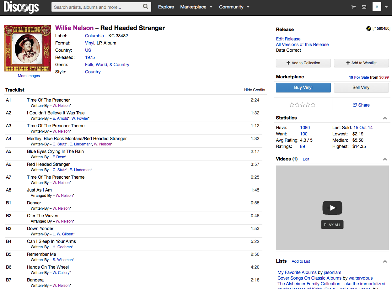 I’m not sure why the local brick & mortars in and around the Los Angeles area haven’t stocked the 1975 Willie Nelson classic, Red Headed Stranger (you know, the one with Blue Eyes Crying in the Rain on it). There are currently 1080 owners of this album on Discogs, and there are 19 copies on sale starting at $0.99, yet I’ve still never seen one among my multiple hunts throughout the last 12 hunting months. “Just order it on Discogs, then, and stop wasting my time!” I just can’t justify paying more for shipping than the item being shipped, Mr. and / or Mrs. Mud Stick.
